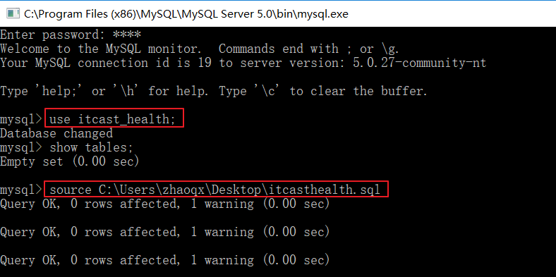 (3)将PowerDesigner导出的SQL脚本导入itcast_health数据库进行建表