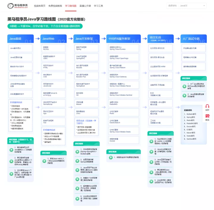 黑马程序员为大家准备了2023年的入门—>进阶—>就业的课程安排。