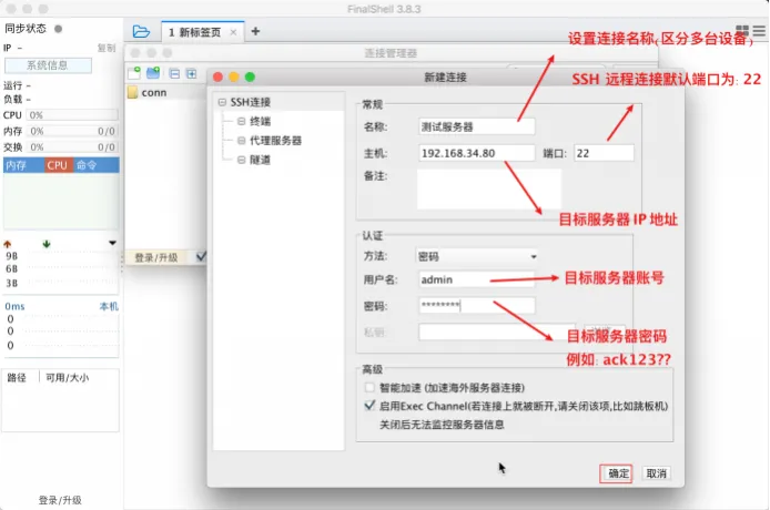 注意 : 在⼯作中此步骤可以省略 , 可以直接向相关⼈员获取 IP 地址及账号和密 码