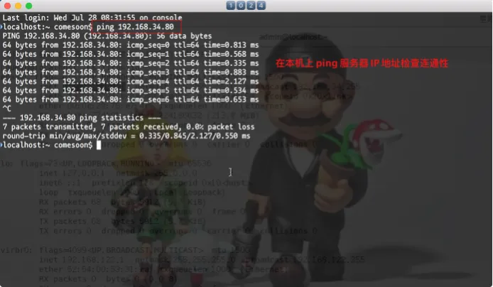 在本机上的命令⾏内使⽤ ping 命令⾏测试下连通性