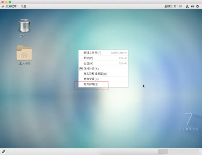 虚拟机系统中的桌⾯上⿏标右键打开终端