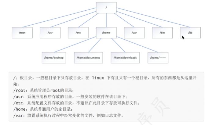 说明 : 不同于 Windows 系统的⽂件路径的起点是盘符 , Linux 系统的路径起点 是'/'(根⽬录)