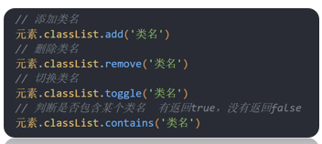 元素.classList.contains() 看看有没有包含某个类,如果有则返回true,么有则返回false。