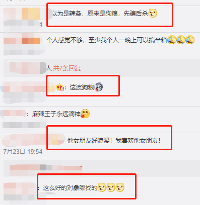 此事登上热搜后迅速引发众网友的讨论,大家直呼,猝不及防一波狗粮,吃得心服口服!也有网友更是调侃道:我嫉妒的是他的辣条吗?我嫉妒的是他有对象!