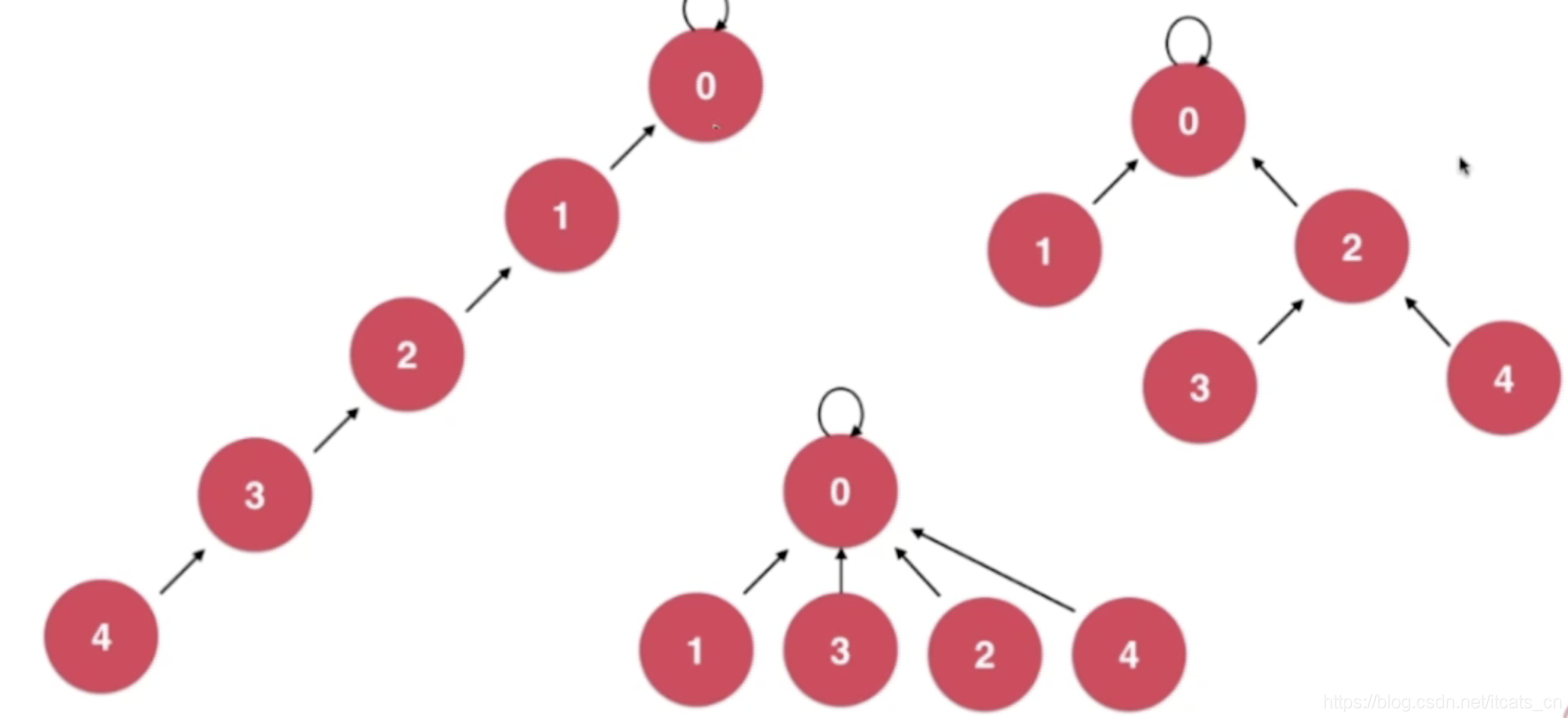 树的最大深度仍然为3,这样的优化称为基于rank的优化,使用rank[i]表示根节点为i的树的高度。