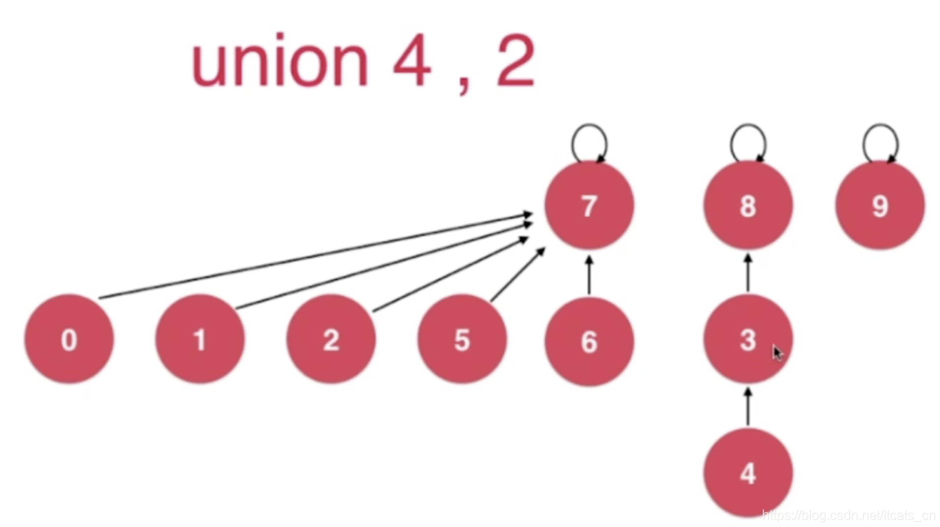 如果我们要union(4,3)的话,实际上就是将4的指针指向节点3