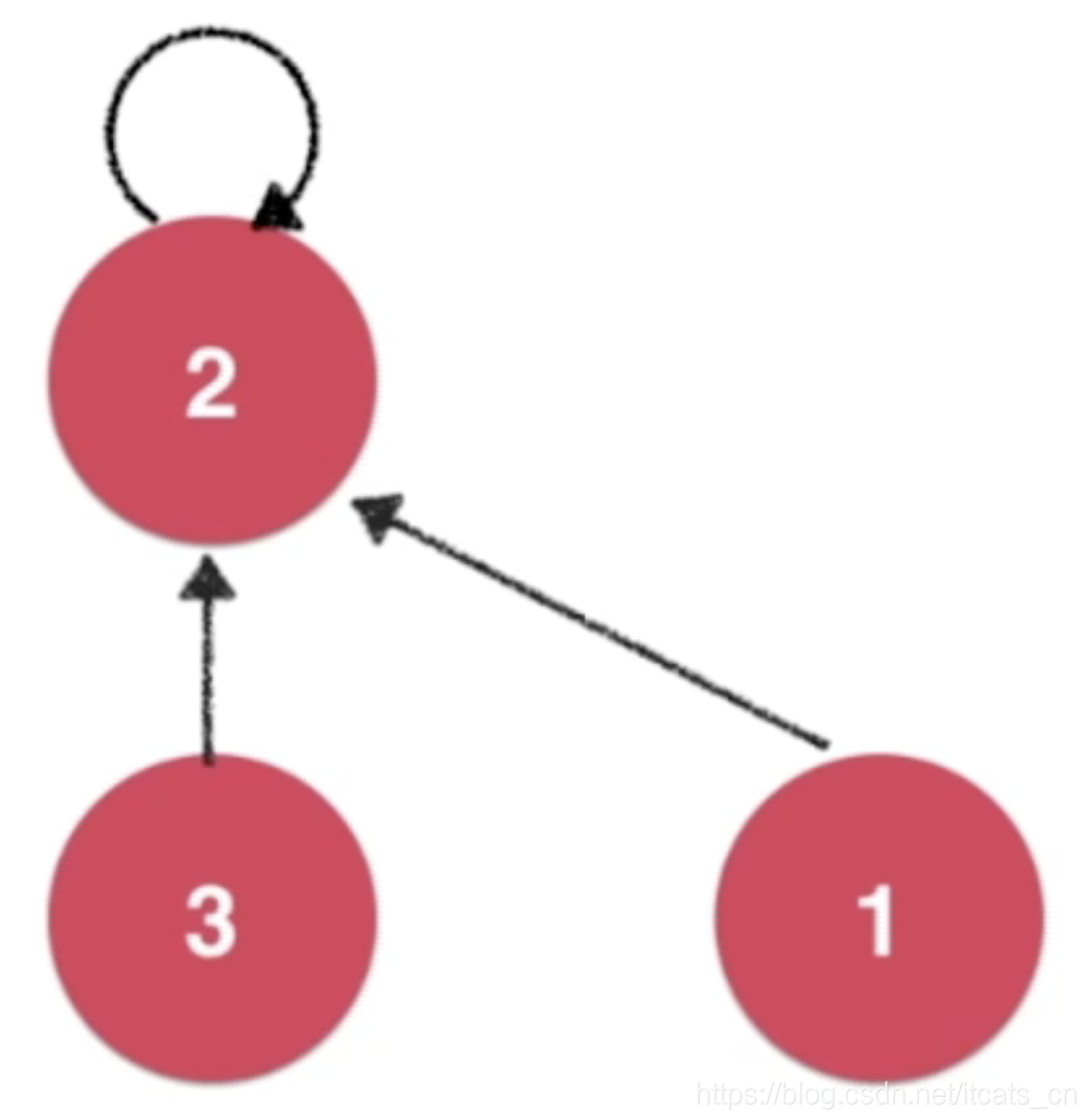 ①我们将每一个元素看做是一个节点,图中节点3指向节点2,节点2作为根节点,对于节点2而言,它也有一个指针指向自己。