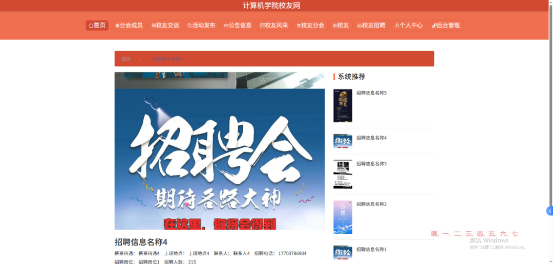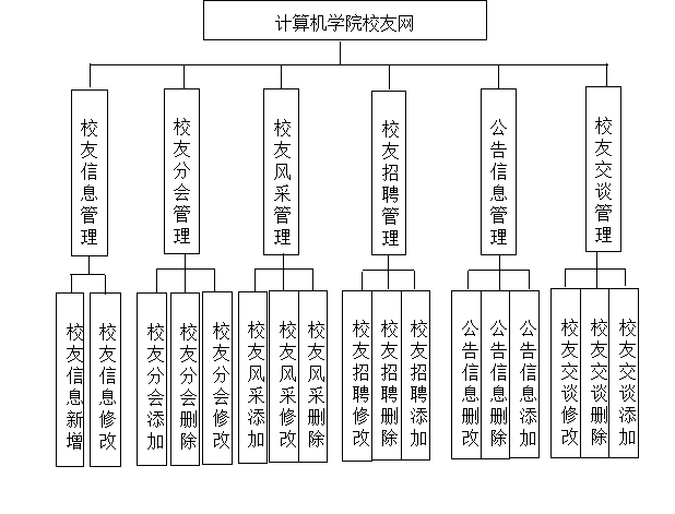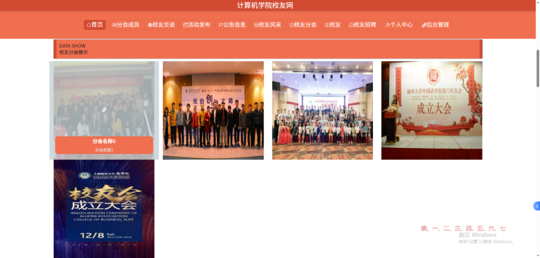 该校友网站围绕校友的多元化需求,设置了六大核心功能模块。校友信息管理模块支持校友新增、修改个人信息,便于维护精准的校友数据;校友分会管理模块可实现校友分会的添加、删除与修改,助力各地校友组织的规范化运营;校友风采管理模块用于展示校友的优秀事迹与成就,发挥榜样引领作用;校友招聘管理模块为校友企业和求职者搭建桥梁,支持招聘信息的添加、删除与修改;公告信息管理模块及时发布学院动态、校友活动等通知;校友交谈管理模块则提供了校友间交流的平台,支持交谈信息的添加、删除与修改。这些功能从信息管理、资源对接、互动交流等多方面,为计算机学院校友打造了一个实用、便捷的线上家园。