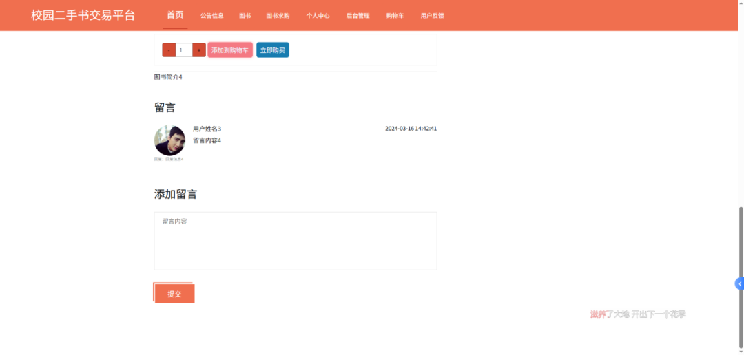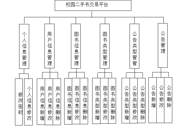 基于Spring Boot的校园二手书交易平台功能较为完善。个人信息管理模块支持学生修改密码和个人信息,方便用户维护账户安全与个人资料。用户信息管理模块可实现用户信息的新增、修改和删除,便于平台对用户身份进行管理。图书信息管理模块能对图书信息进行新增、修改和删除,学生可上传二手书的详细信息,如书名、作者、价格、新旧程度等。图书类型管理模块可对图书类型进行新增、修改和删除,帮助学生对书籍进行分类,便于快速查找。公告类型管理和公告管理模块,用于管理平台公告的类型与内容,学生能及时了解平台规则、交易活动等信息。这些功能相互协作,为校园二手书交易的全流程提供支持,提升交易的便捷性与信息的透明度。