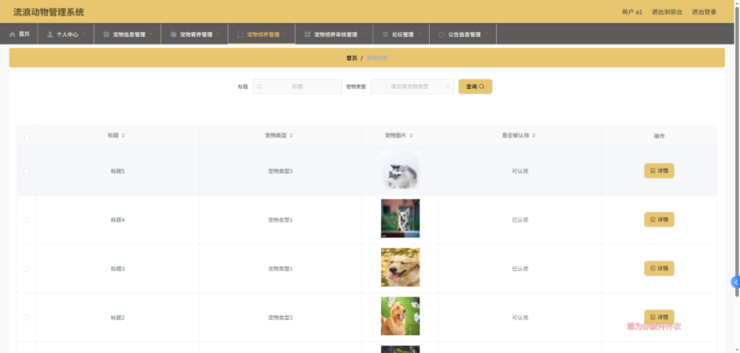 目前,虽有爱心人士成立流浪动物救助站收留流浪狗,但受限于场地、资金和人手,救助站常面临宠物数量超出承载能力的困境,部分无法安置的宠物最终只能被迫接受 “安乐死”。为改善这一现状,传统线下登记领养的低效模式正在被淘汰,取而代之的是可通过终端设备访问的流浪动物管理系统。该系统大幅提升了领养流程的效率,也为有领养意愿的用户搭建了便捷、透明的对接平台,让流浪动物更易找到合适的新家。