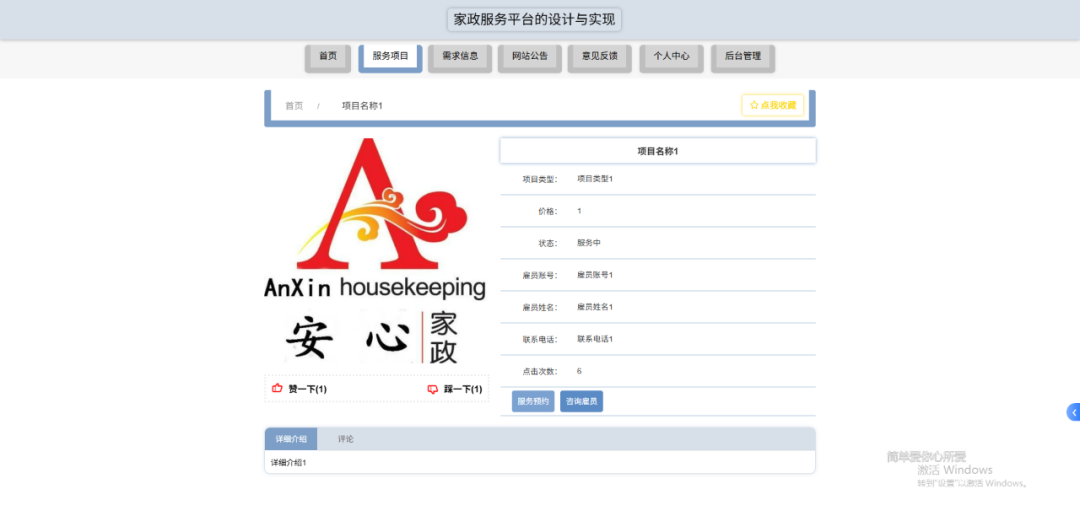 该家政服务平台围绕家政服务的全流程进行功能设计。个人中心模块,方便用户管理自身基本信息与操作记录;雇主管理和雇员管理模块,可对雇主与家政人员的信息、资质等进行维护,确保服务双方信息的准确性;资料认证管理能对家政人员的各类资质证明进行审核与管理,保障服务质量;项目类型管理用于划分不同的家政服务项目类别,如保洁、育儿等,方便用户查找;服务项目管理则详细记录每个服务项目的内容、价格等信息;需求信息管理和服务预约管理,助力雇主发布需求、预约服务,也让家政人员能及时响应;申请预约管理与签订合同管理,规范了服务预约到合同签订的流程;雇主评价管理可让雇主对服务进行评价,为后续用户提供参考;留言板管理方便用户交流反馈;系统管理模块负责平台的整体配置与维护等工作,各功能相互配合,实现家政服务的高效运转。