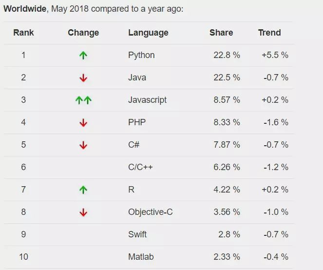 Python在五月份的热门最新排行,竟然超过了Java,厉害了,我的Python!