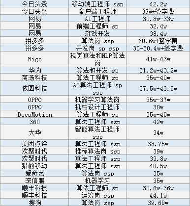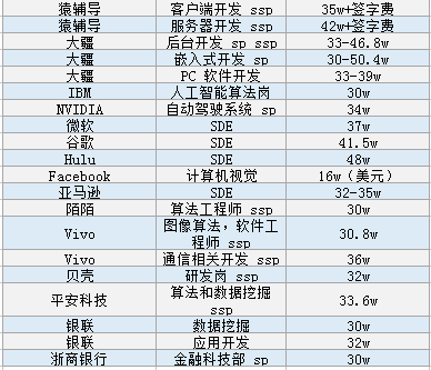 AI科技评论按,秋季校园招聘已进入尾声。近年来,校招成为了企业争夺人才的主要阵地,尤其是互联网行业,很多企业都会用高薪来吸引优秀的人才。最近,网上曝光了一份互联网行业高薪清单: