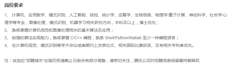 腾讯计算机视觉工程师: