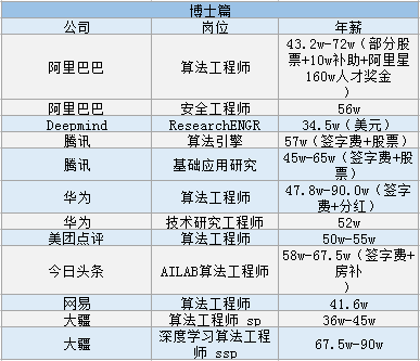 华为、大疆给算法工程师开出的薪资已经达到 90 万人民币。其中阿里还提供 160 万人民币的人才奖金。