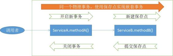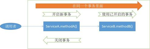 这样,在ServiceA.methodA()或在ServiceB.methodB()内的任何地方出现异常,事务都会被回滚。 即使ServiceB.methodB()的事务已经被提交,ServiceA.methodA()在下面异常了要回滚,那么ServiceB.methodB()也会回滚。
