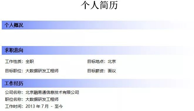写简历首先要有一个好的模板,我们做技术的不同于 UX,UED,我们不需要那么花哨,但是也需要整洁干净。好的模板能让你的简历给面试官一个好的印象,有一句话说得好,简单而不简单。
