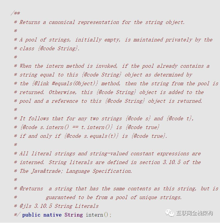 我们使用一种被称为String驻留的技术,把字符串保存在字符串池中。Javadoc告诉我们关于intern()方法的说明: