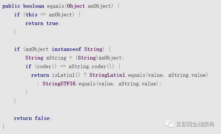 因为我们使用equals()方法,字符串的值而不是对象实例将会被比较。在这个例子中,对象是否相同并没有关系,因为比较的是它们的值。这个比较返回true。