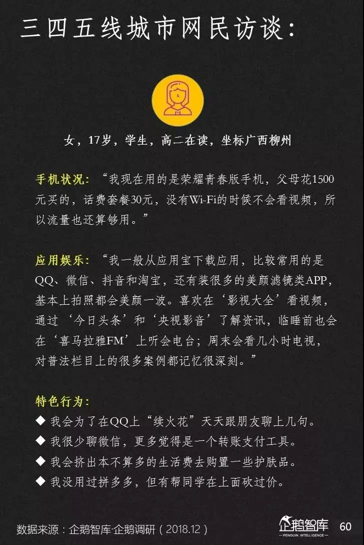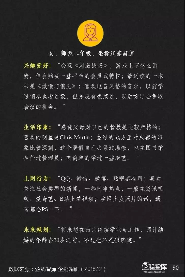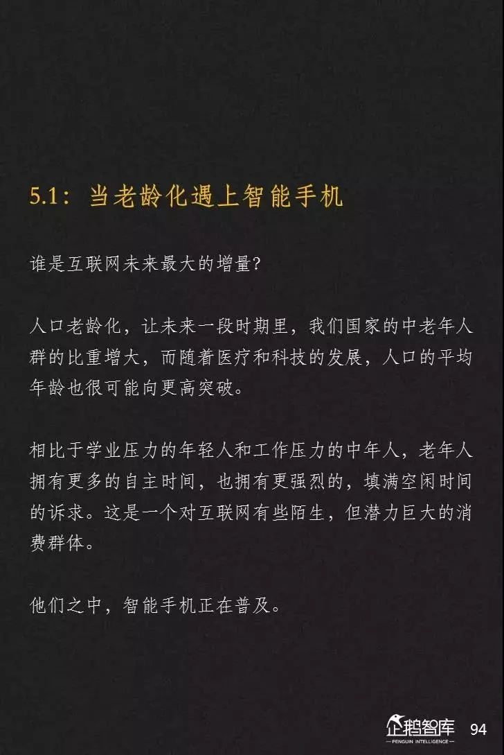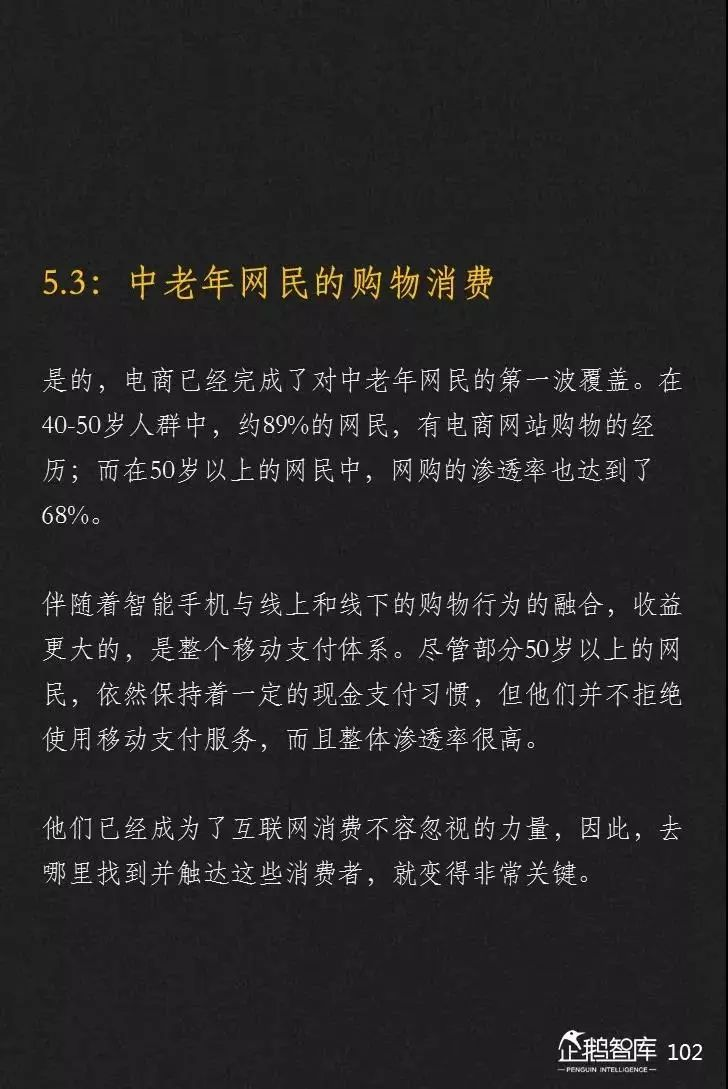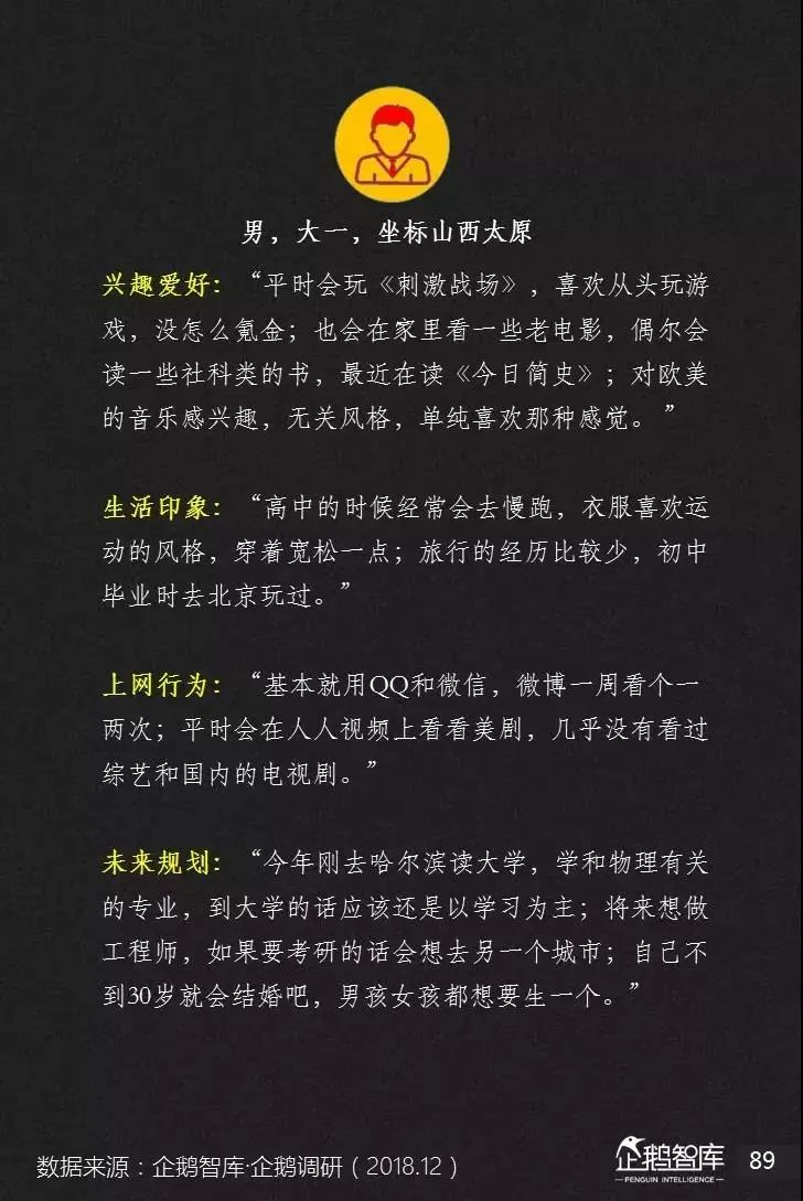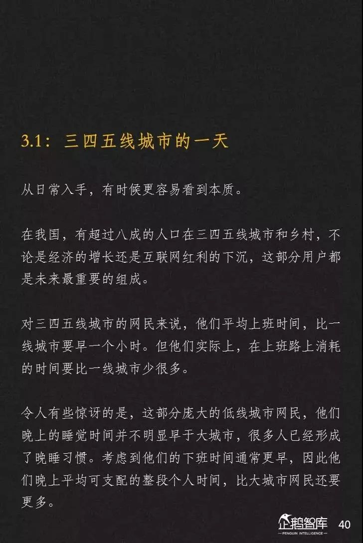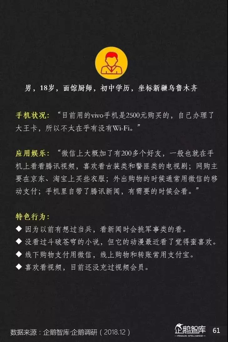 2019年1月,腾讯·企鹅智库正式发布长达205页的《2019-2020中国互联网趋势报告》。这是一份聚焦于未来两年,市场和用户变迁的最新数据和研究。当经济增长面临更多的复杂性,行业红利和人口红利已经告别野蛮生长时,我们也许比中国互联网历程中的任何时刻,都更需要了解我们的用户,更需要重新认识他们。因为我们从未真正认识那个完整意义上的“他们”。