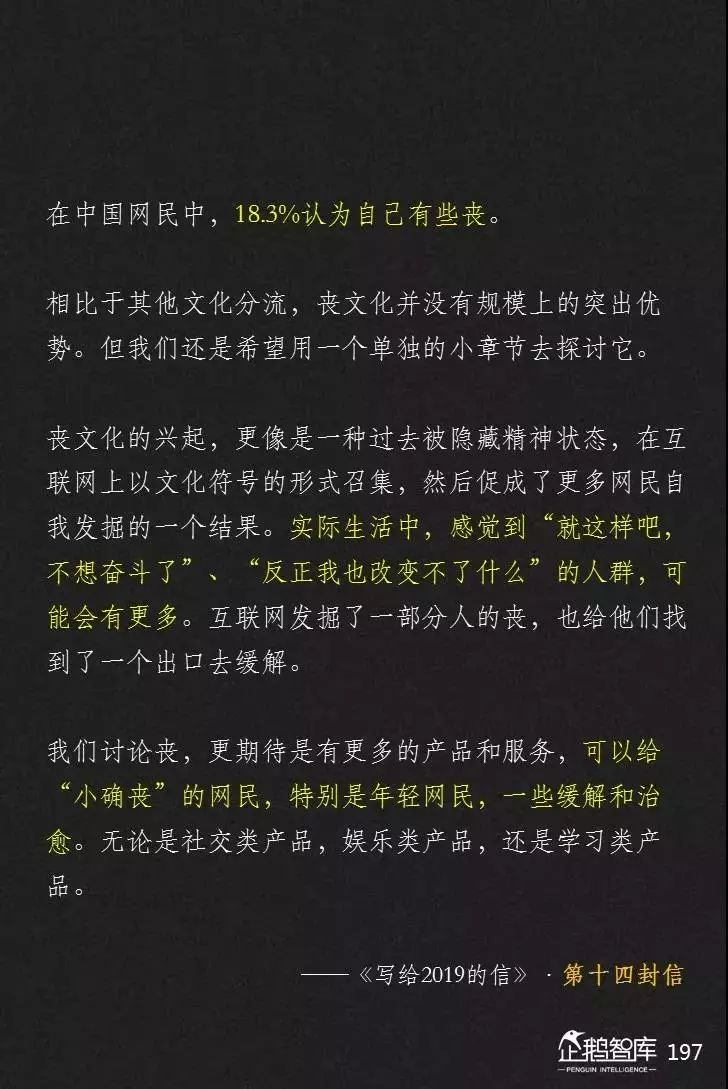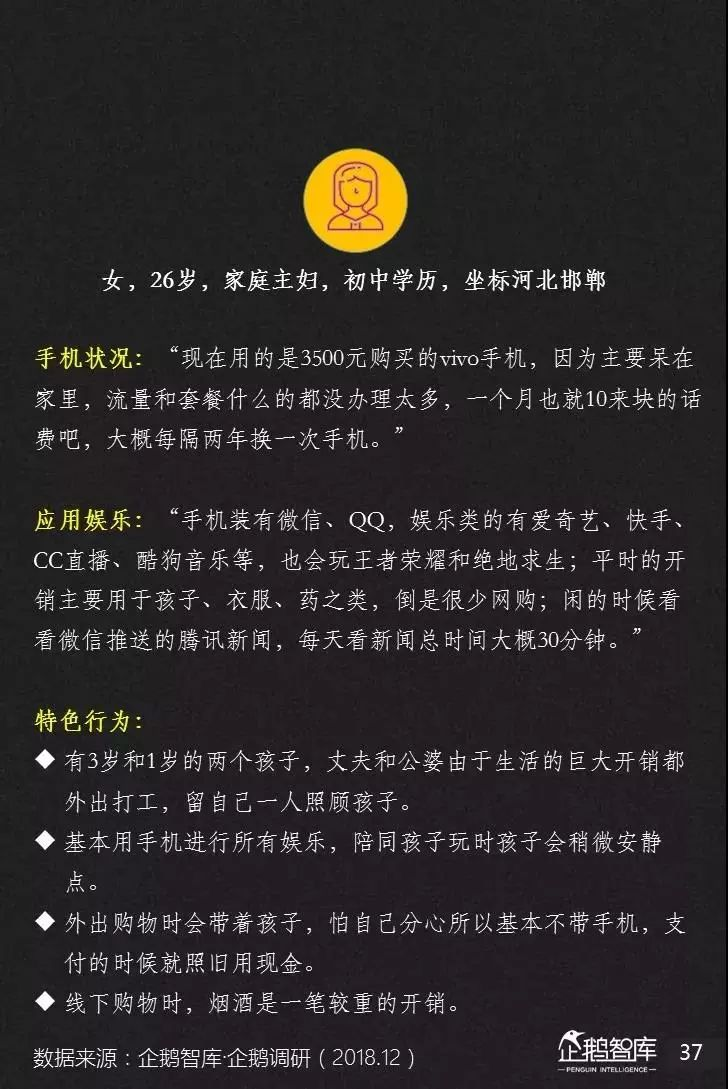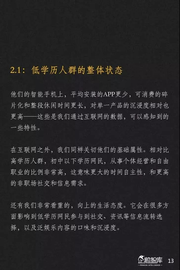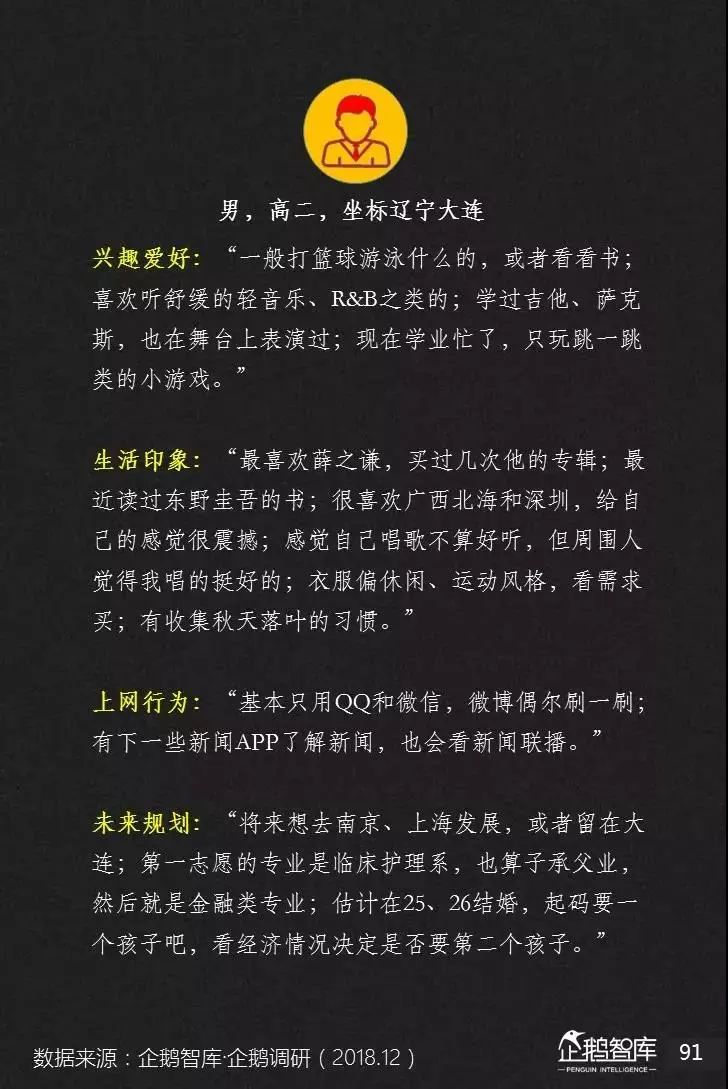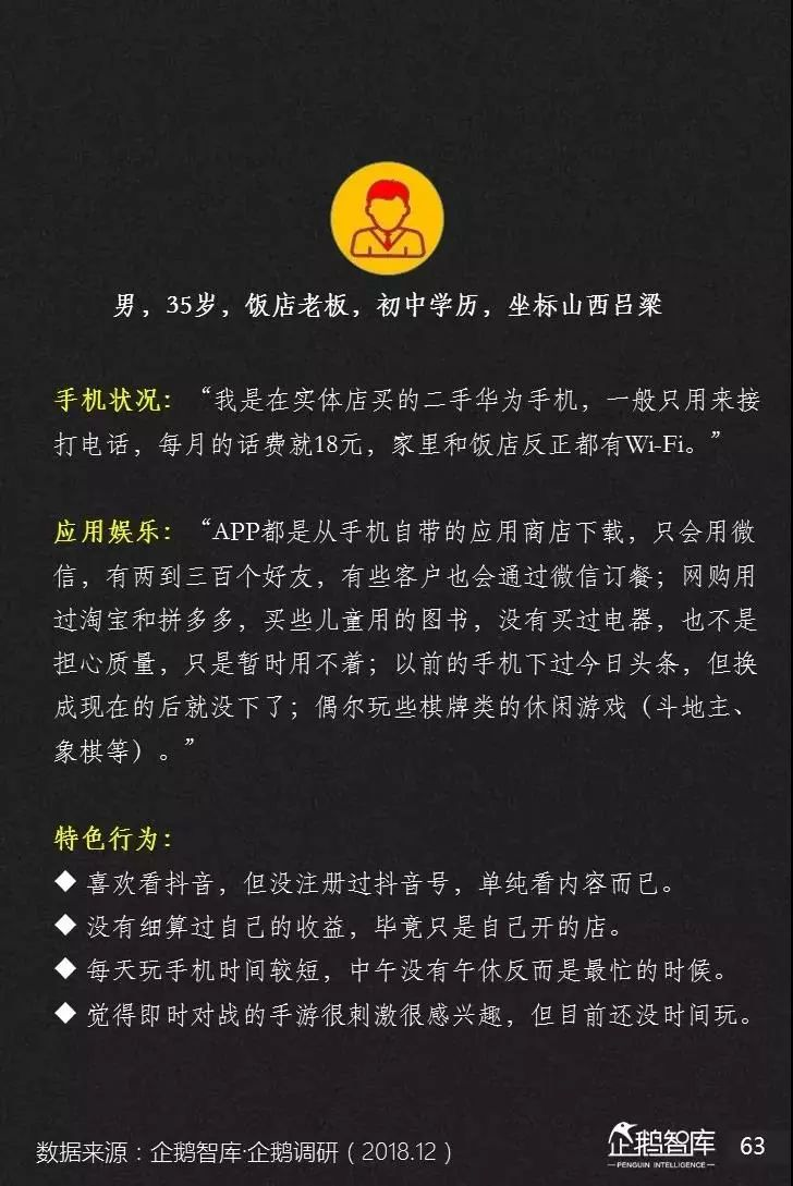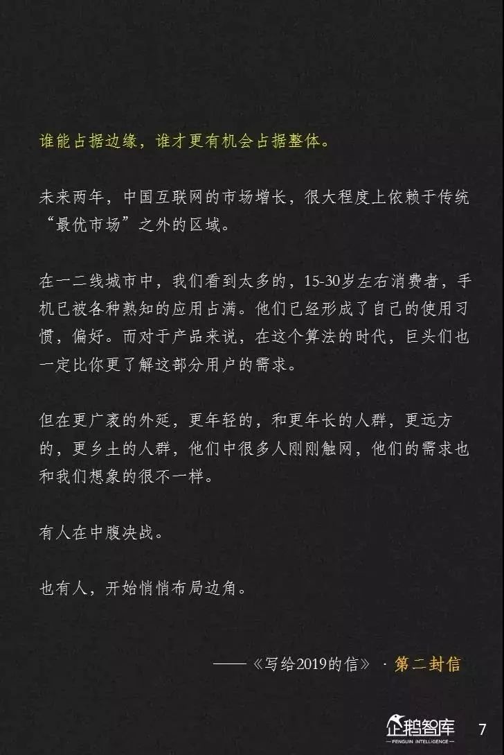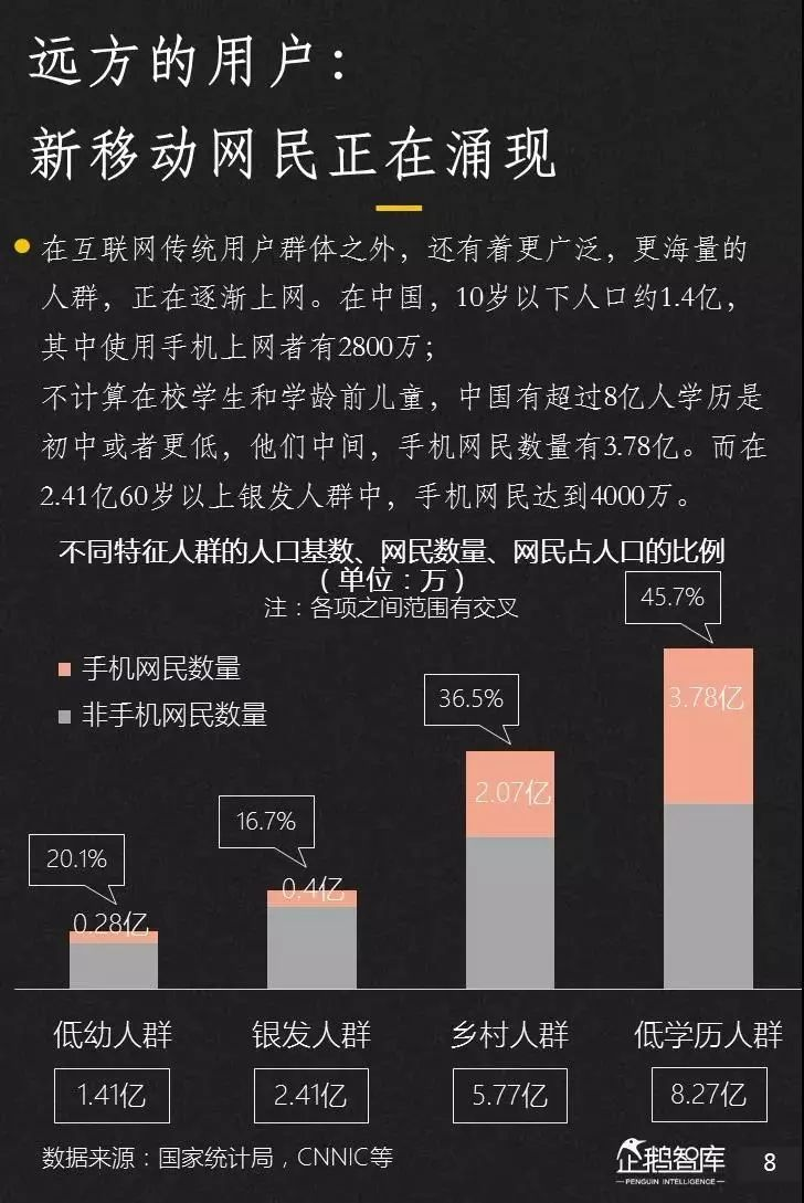 2019年1月,腾讯·企鹅智库正式发布长达205页的《2019-2020中国互联网趋势报告》。这是一份聚焦于未来两年,市场和用户变迁的最新数据和研究。当经济增长面临更多的复杂性,行业红利和人口红利已经告别野蛮生长时,我们也许比中国互联网历程中的任何时刻,都更需要了解我们的用户,更需要重新认识他们。因为我们从未真正认识那个完整意义上的“他们”。