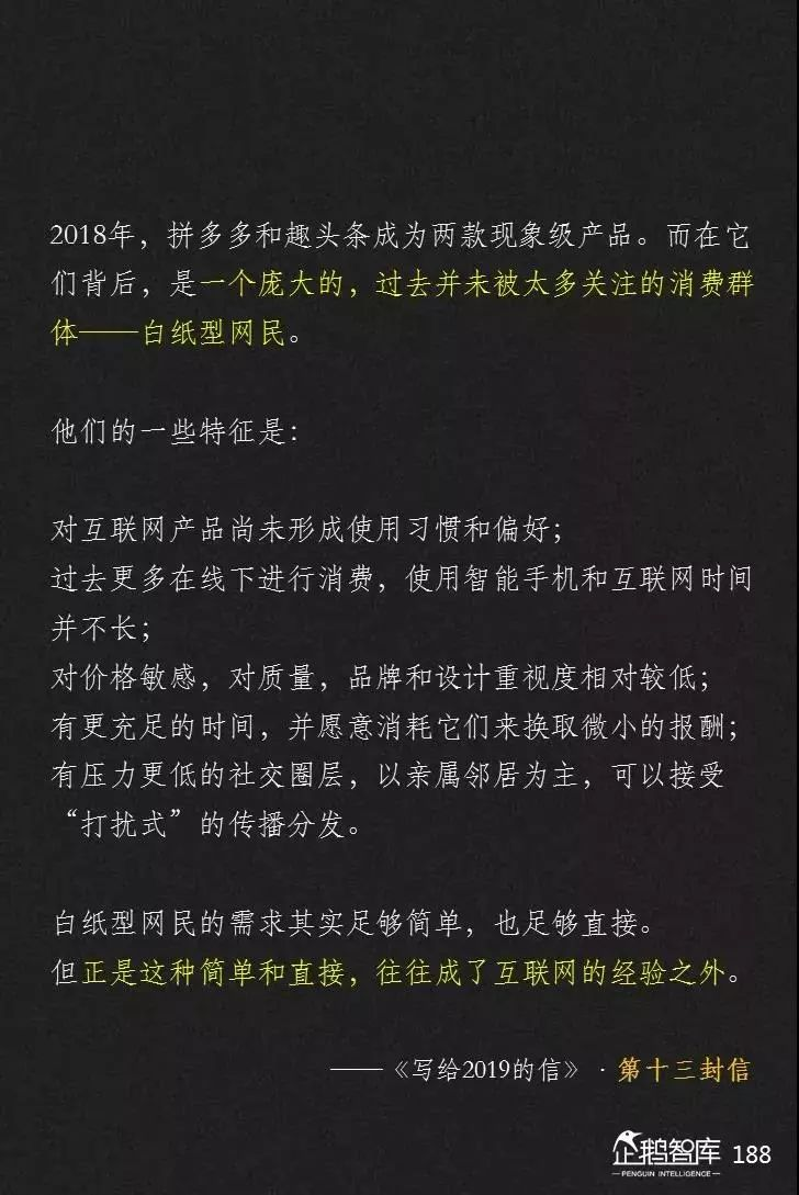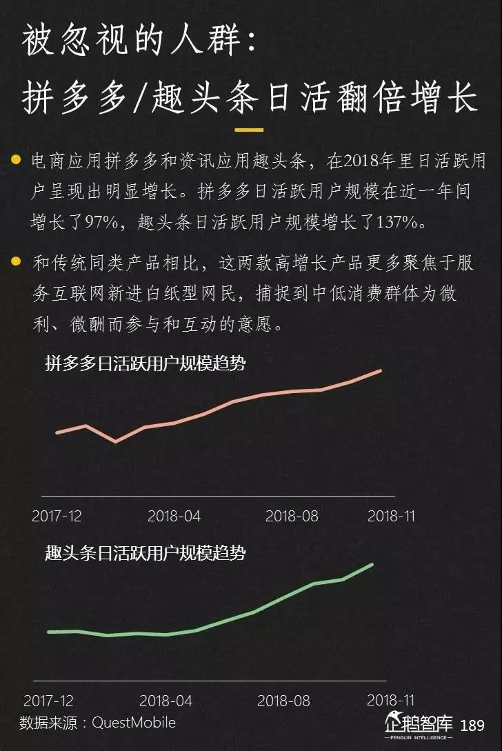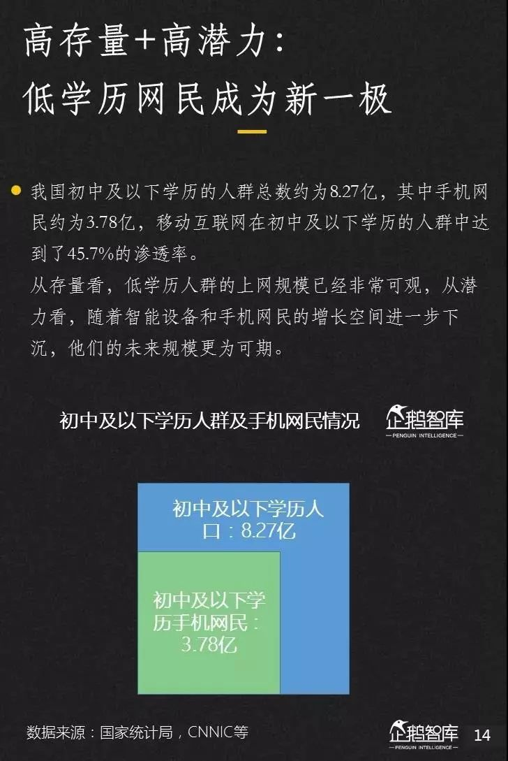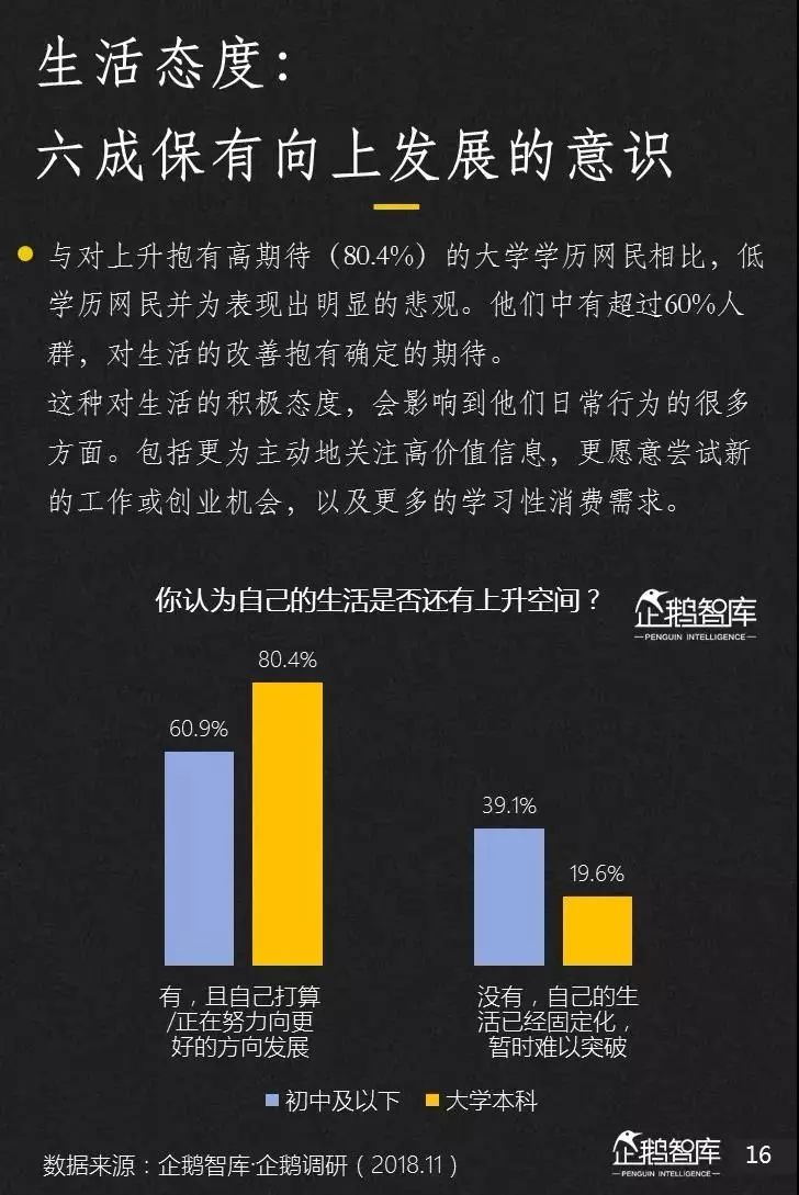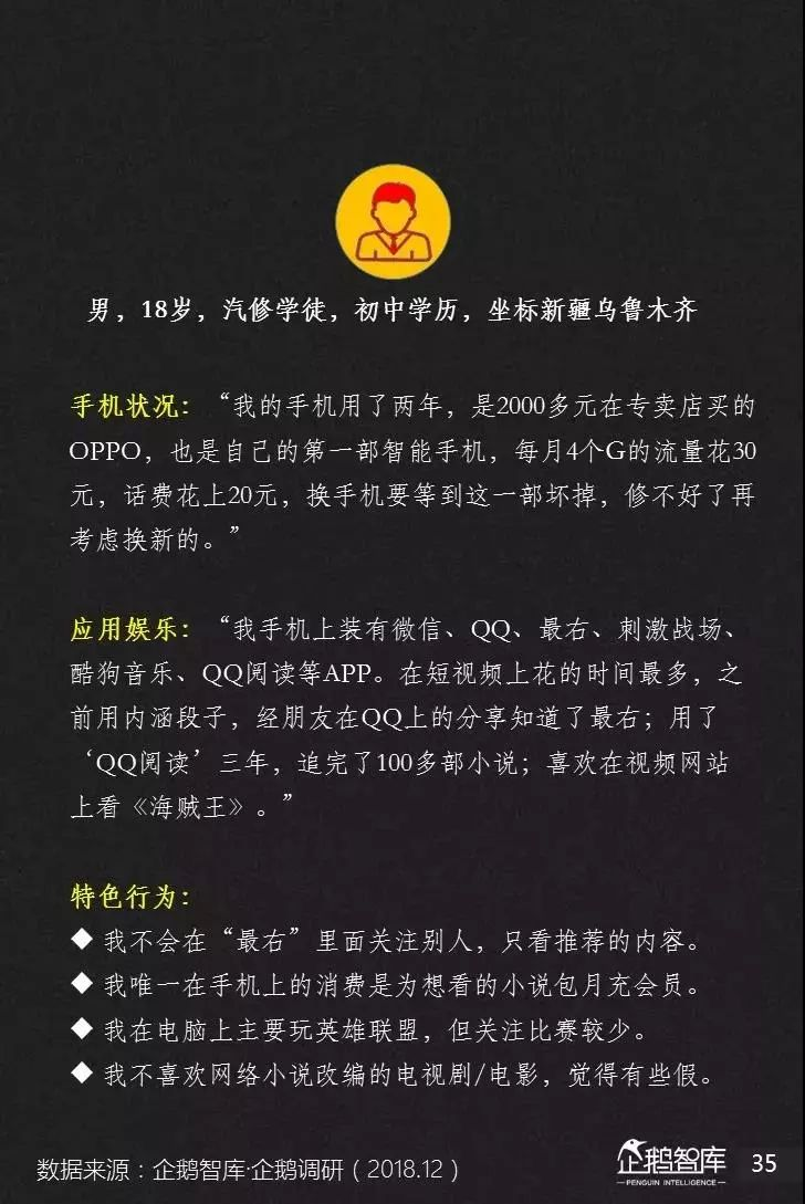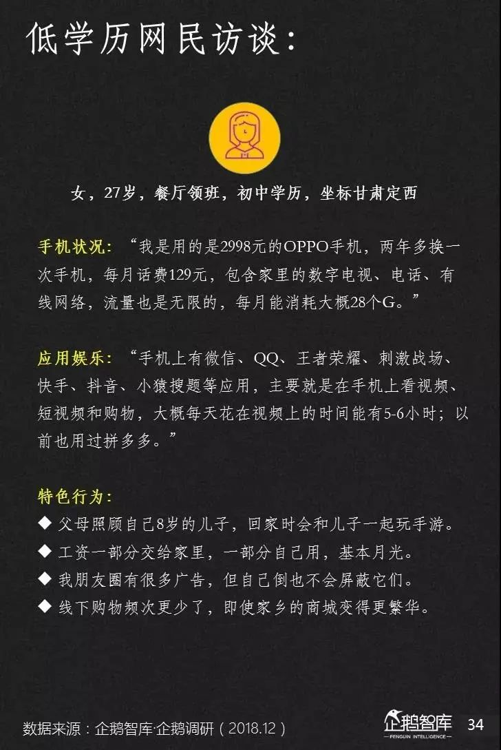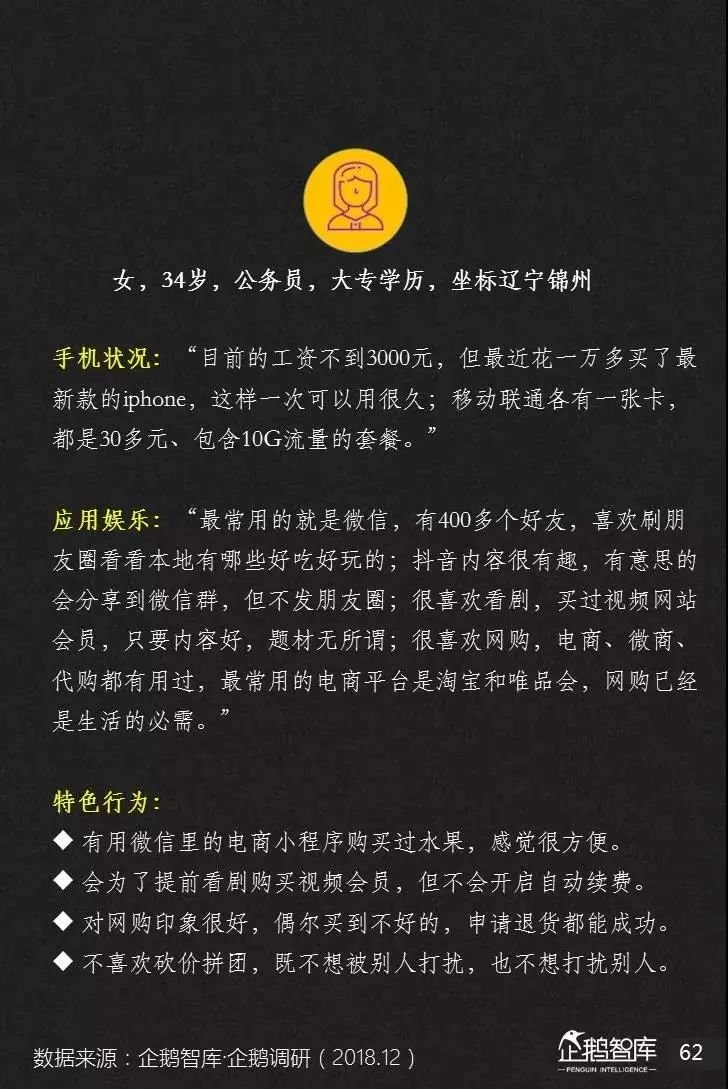 2019年1月,腾讯·企鹅智库正式发布长达205页的《2019-2020中国互联网趋势报告》。这是一份聚焦于未来两年,市场和用户变迁的最新数据和研究。当经济增长面临更多的复杂性,行业红利和人口红利已经告别野蛮生长时,我们也许比中国互联网历程中的任何时刻,都更需要了解我们的用户,更需要重新认识他们。因为我们从未真正认识那个完整意义上的“他们”。