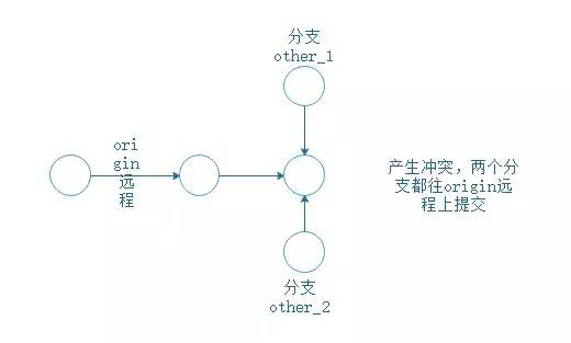 假如有这样一种情况,分支other已经commit了,但是此时指针指回master时,并且master没有合并,而是git add / commit 提交了。这样,就产生了冲突,主分支master文件内容与other分支的内容不一样。合并不起来!所以,