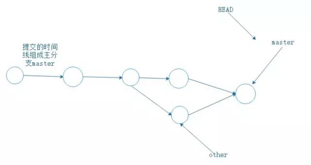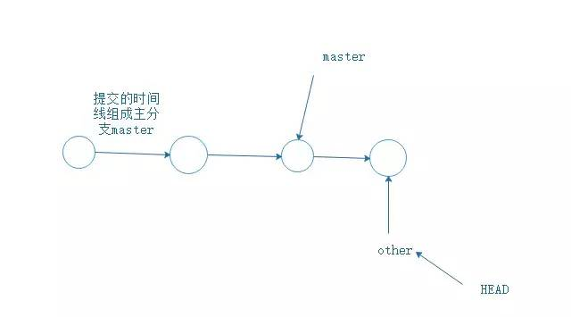在没有其他分支插进来时,只有一个master主分支。每次你git push -u origin master 提交就是增加一条时间轴,master也会跟着移动。