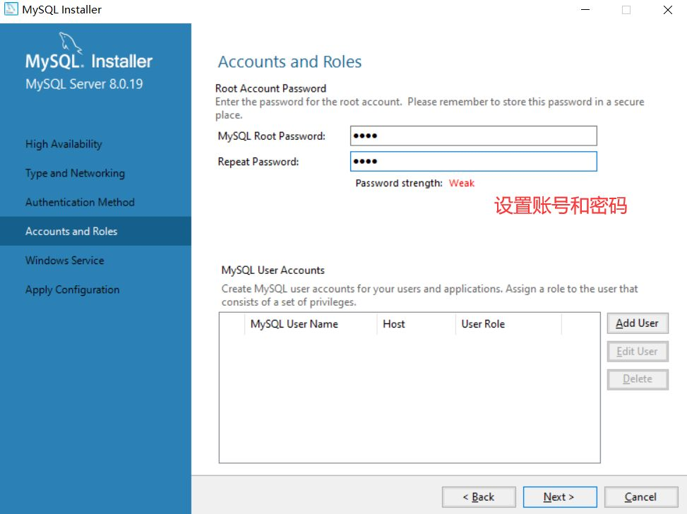 然后设置MySQL的账号和密码,这个要自己记住了,重要!!!
