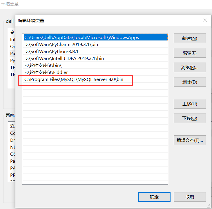 接下来,配置一下MySQL的环境变量,Windows 10 64位系统默认安装在C:\Program Files\MySQL\MySQL Server 8.0\bin