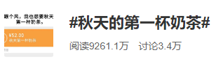 有人说:“今年的秋天比以往来的早一些,所以今年这个秋天的第一杯奶茶安排一下。”