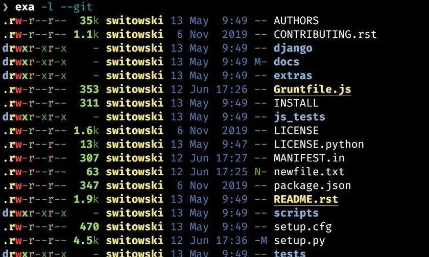 它色彩艳丽,还可以显示 git 状态等其他信息,自动将文件大小转换为方便人们阅读的单位,并且所有这些都保持与ls几乎相同的执行速度。