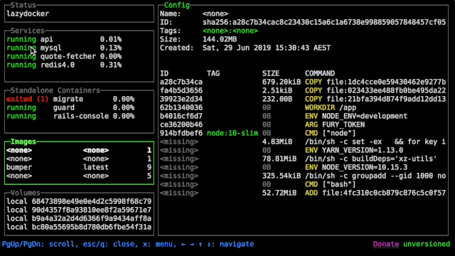 lazydocker它是一个非常成熟的拥有终端 UI 界面的工具,提供了非常丰富的功能用于管理 Docker。