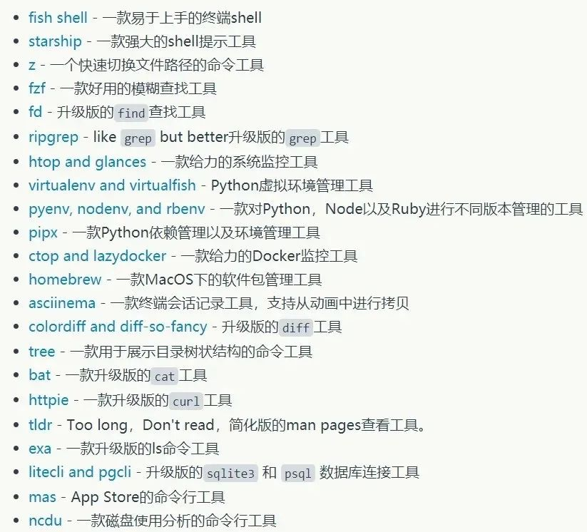 如果必须要从本篇文章中选择一个我最喜欢的终端工具——那非 Starship 莫属。Starship 可以适用于任何 Shell。你只需要安装它,然后在相应的配置文件.bashrc/.zshrc/config.fish添加一行配置,剩下的工作交给它来完成就好了。