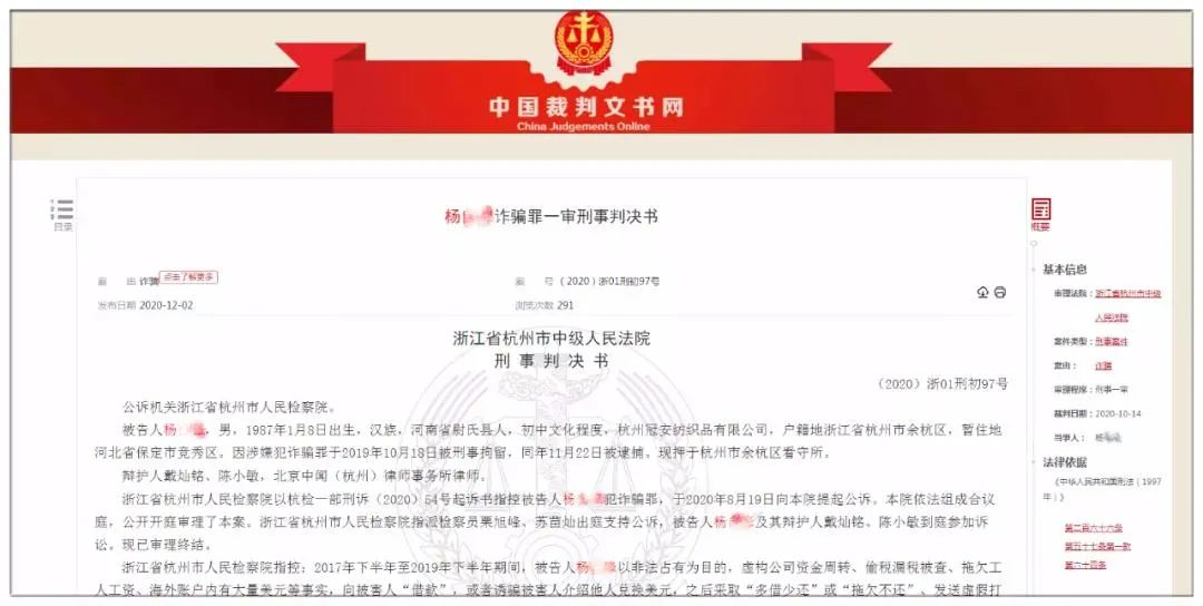 为此,浙江省杭州市中级人民法院经过庭审后认为,杨某锋以非法占有为目的,采用虚构事实,隐瞒真相的方法,骗取他人数额特别巨大的财物,其行为已构成诈骗罪。公诉机关所控罪名成立。