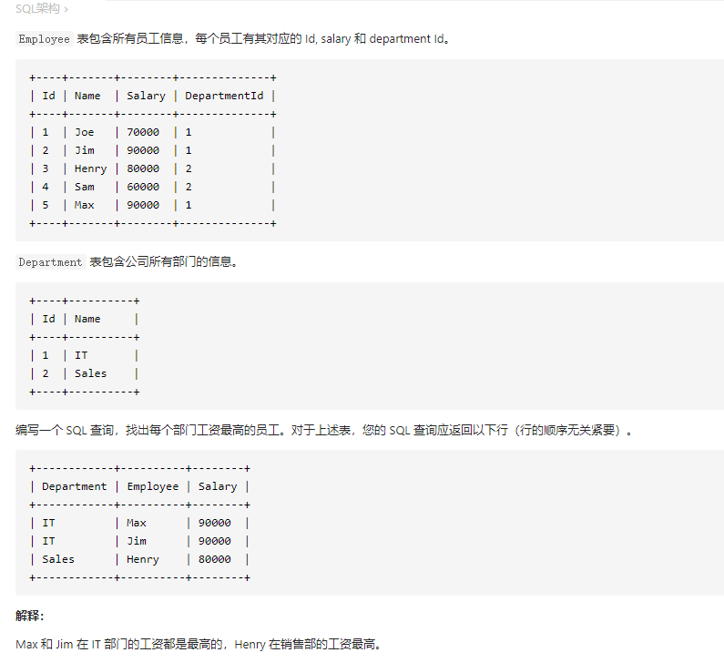今天和大家聊的问题叫做 部门工资最高的员工 ,我们先来看题面: