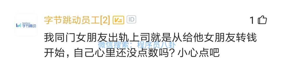 另一个程序员说,他同门的女朋友出轨上司,就是从上司给他女朋友转钱开始。