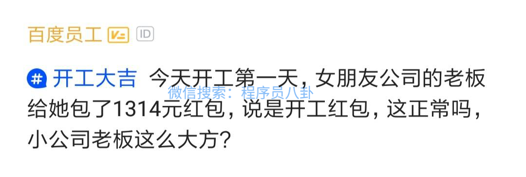 原来女朋友的老板给她包了1314元的红包,这个数字似乎有点不太对劲,小哥哥忍不住发帖吐槽:这正常吗?小公司老板都这么大方?