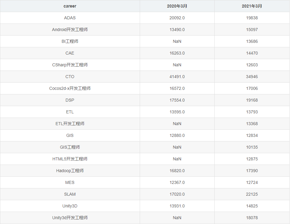 2021年3月采集数据124176条。2021年3月全国程序员平均工资15189元,工资中位数12500元,其中95%的人的工资介于5250元到37500元。