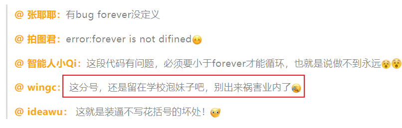 而另外一名学生看到前人的悲剧后,对代码进行了改进,解决了分号的问题,大家来看看: