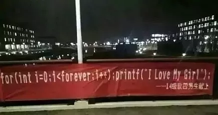 就在前几年,某校的 14 级软四的男生给同校妹子做了一条横幅,内容也是霸气外露: