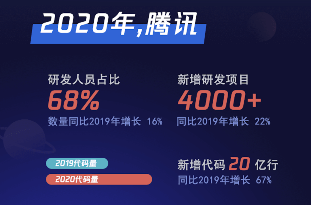 0、2020 年鹅厂新增 20 亿行代码,研发员工占比 68%