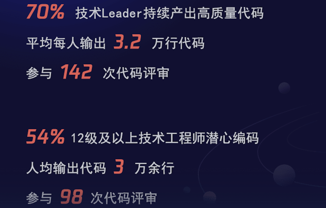 54% 的 12 级及以上技术专家潜心编码,人均输出代码 3 万余行。