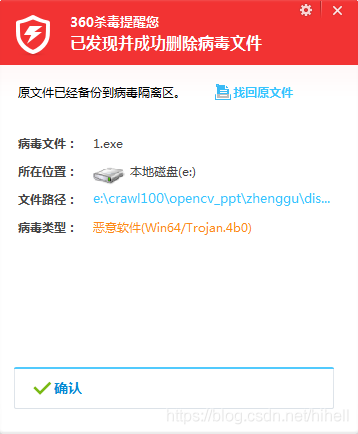 当然我安装 360 之后,程序没了。有兴趣研究免杀的,可以在给本文点个赞,点赞过 100,我出套 Python 免杀教程。