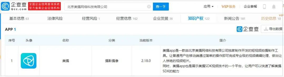 旗下有多条软件著作权,包括“美映(iOS版)”、“美摄云剪辑”、“美摄转码”等,公司运营有短视频拍摄制作工具“美摄”APP。