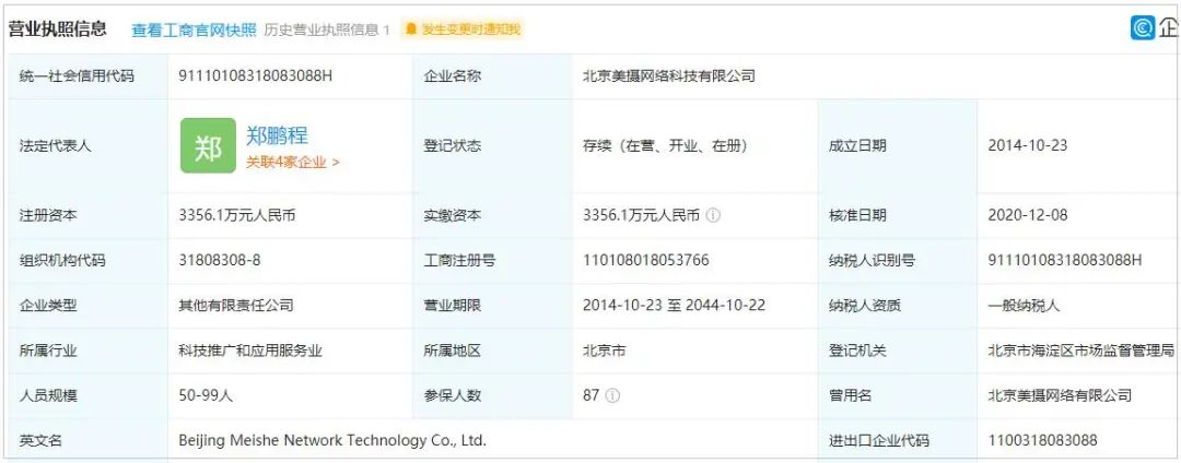 公开资料显示,在2020年12月美摄获得B轮融资,由哔哩哔哩领投,万兴科技产业基金跟投。2020年4月,美摄还获得小米A轮战略投资。