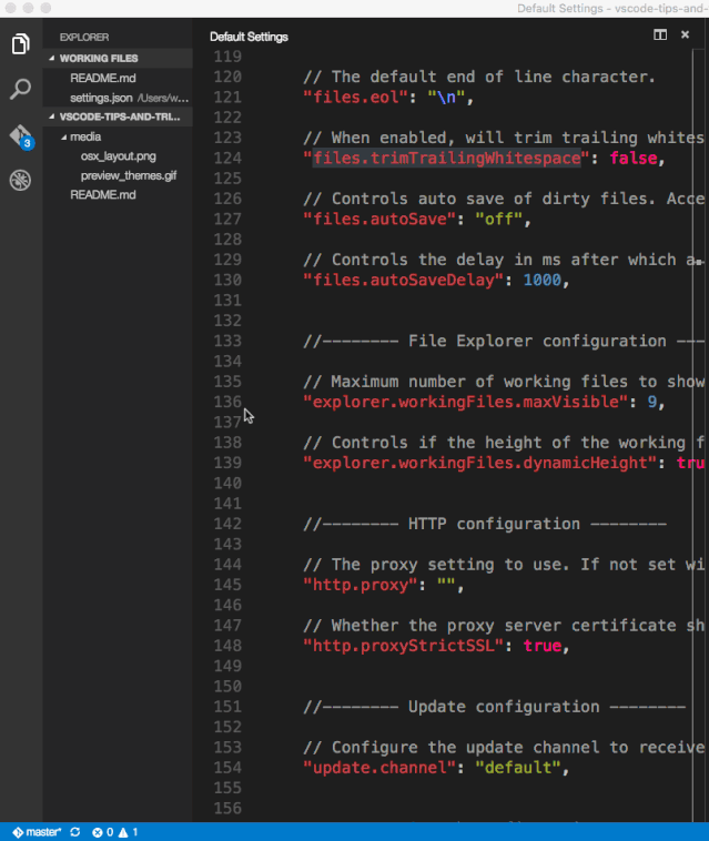 "files.trimTrailingWhitespace": true到设置文件中;保存你的设置文件。