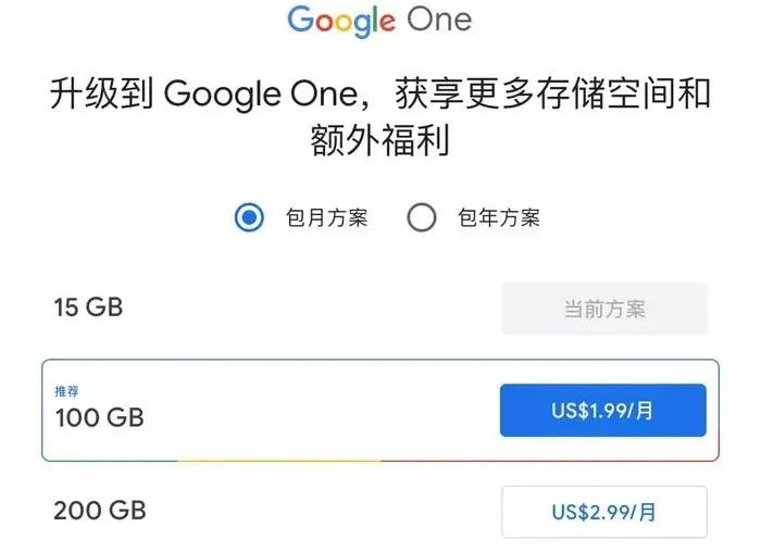根据目前的价格,1.99美元/月或者19.99美元/年可以获得100GB空间。