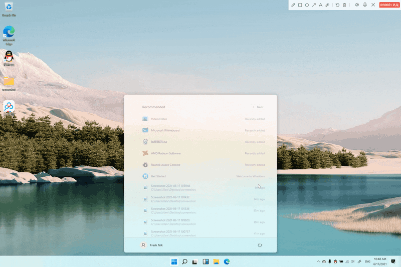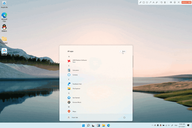 和Win10做个对比,最明显的变化就是任务栏变到了完全居中的位置。