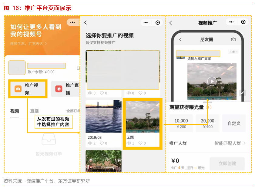 202年2月,微信开放测试了普通系统创作者。11个人使用系统从定位上对标抖音的DOU+和快手的粉条:这三者的核心都是创作者付费购买平台的流量引导和曝光支持,获得解决量,点赞量,小众数上的数据提升。从使用上,粉丝当视频号创作者提交并通过“付费推广”扩展的研究,得到了对应的小程序和网页应用购买视频号的流量支持。